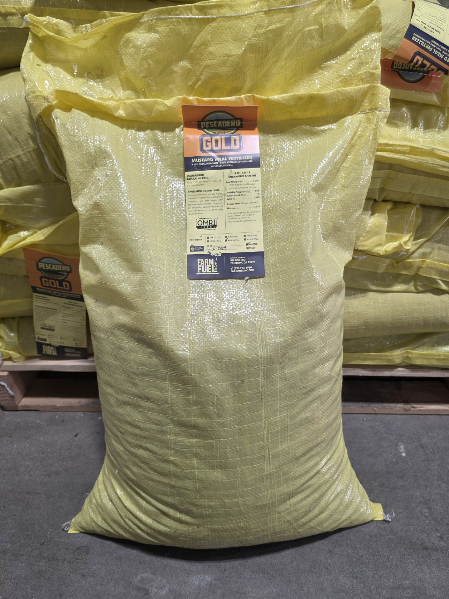 Pescadero Gold Mustard Seed Meal Fertilizer is approved for organic production. Our fertilizer is rich in natural plant nutrients and amino acids. Its formulation is 100% plant-derived allowing for a unique organic composition with positive impacts on microbes in the soil. This, coupled with its highly bioavailable nutrient profile drastically improves crop nutrient uptake and therefore overall crop performance. There are no additives or preservatives used during manufacturing. This creates a unique, high-quality product that goes unmatched in the marketplace. Pescadero Gold continues to impress growers of all crops throughout North America with its ability to enhance crop performance both in the field and in container production.