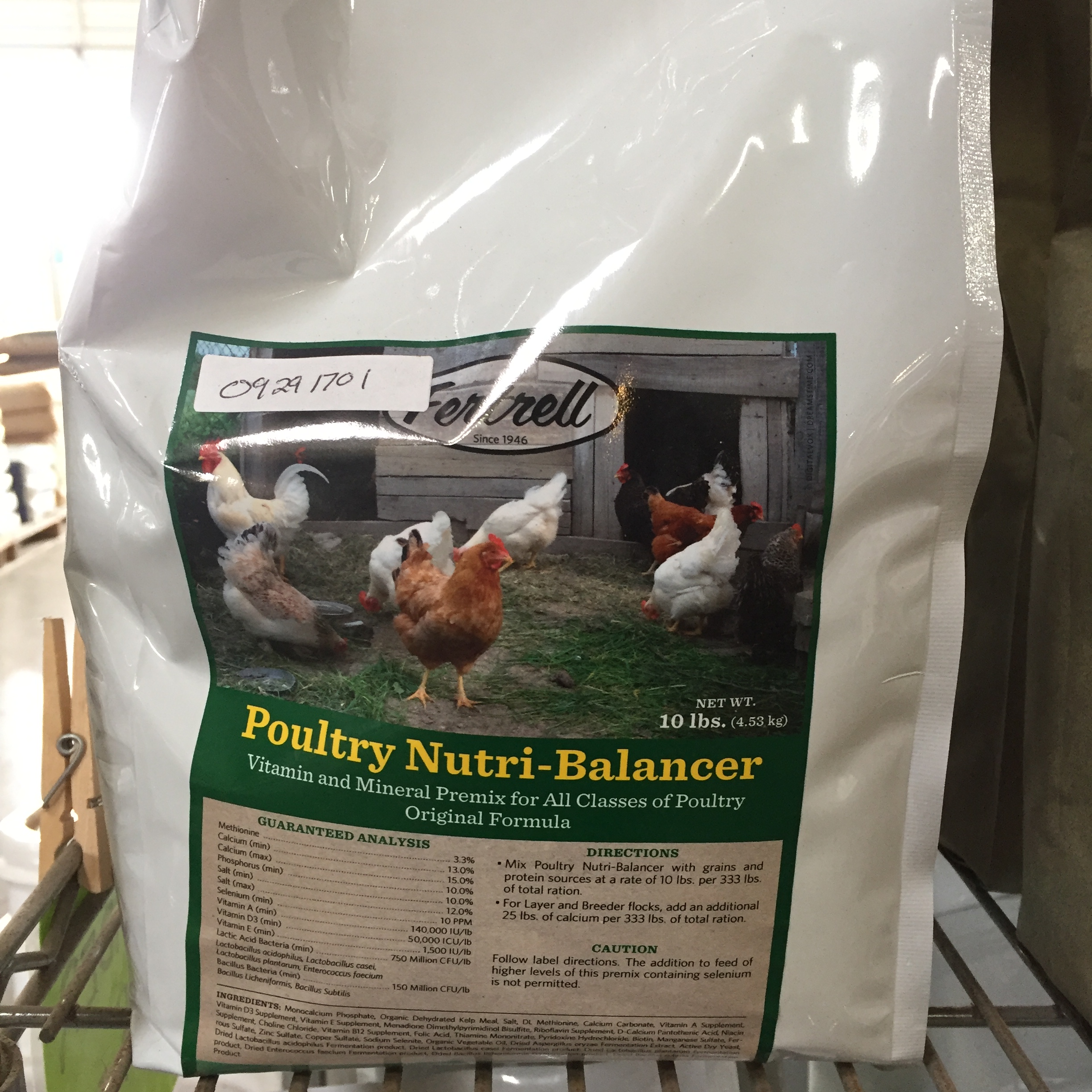 Poultry Nutri-Balancer is made with specialty products created exclusively for Fertrell. As a complete vitamin and mineral supplement, your poultry will thrive on our Poultry Nutri-Balancer. That is why we confidently stand behind the quality of our premier poultry vitamin-mineral supplement. While there are many look-alike products, none can measure up to the original Fertrell Poultry Nutri-Balancer. Poultry Nutri-Balancer can be used for all species of poultry (broilers, layers, turkeys, ducks, guineas, etc), ages and stages of production.